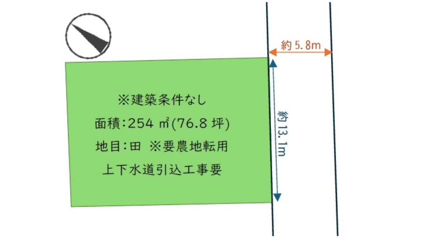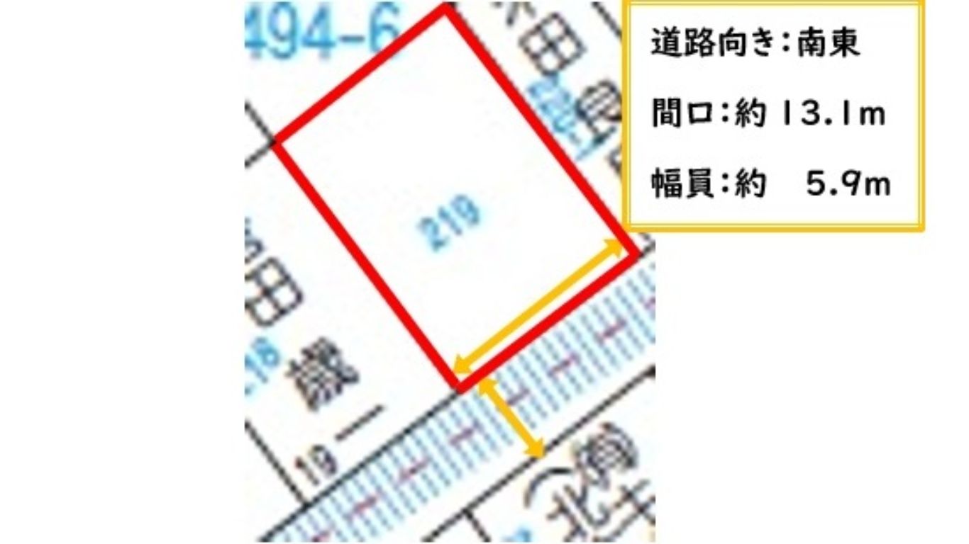 - 接道(間口) 南側約13.1m